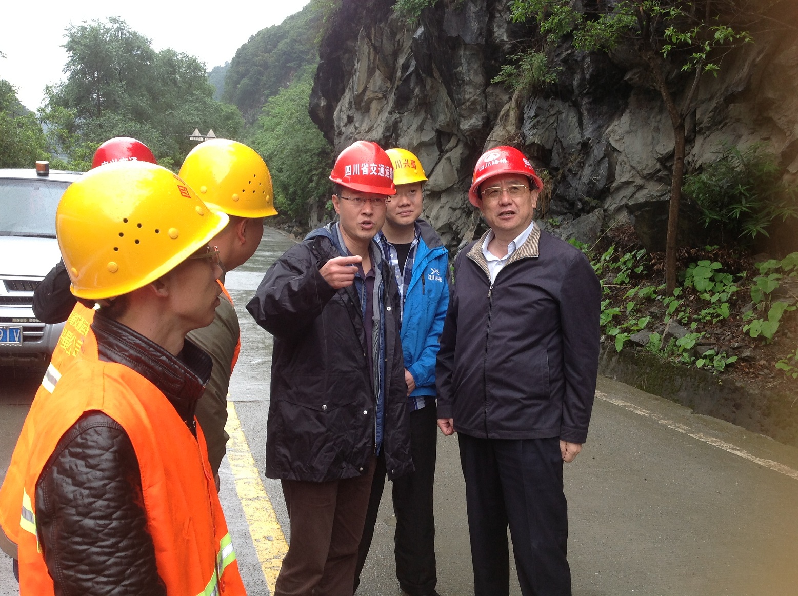 5月17日,省交通運輸廳副廳長白理成一行來到興蜀公司承擔的省道210線蜂桶寨至寶興段檢查工作。廳公路局羅玉宏副局長,寶興縣劉堅副縣長全程陪同,公司工會主席劉健陪同檢查。