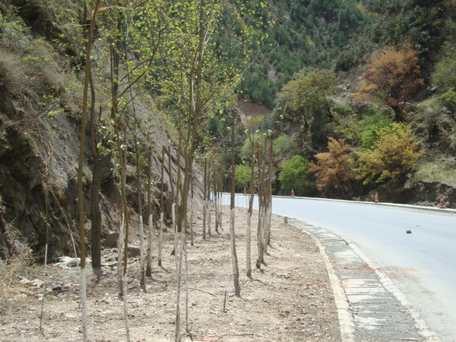 各個施工單位從3月初就開始集中施工設(shè)備和人員,對道路兩側(cè)邊坡的整理工作,整理工作完成后,就立即撒播草種,種植各種樹木,截止到5月底東雅段已完成移植灌木12680株;種植岷江栢4000株;金絲垂柳5006株;白金楊460株;云杉3500株;本地楊 3760株;撒播草種141452平方米。雅紅段已完成綠化面積8萬余平方米,種籽發(fā)芽率均在90%以上。紅海段已完成花草播種約450000平方米,占總工程量的80%。