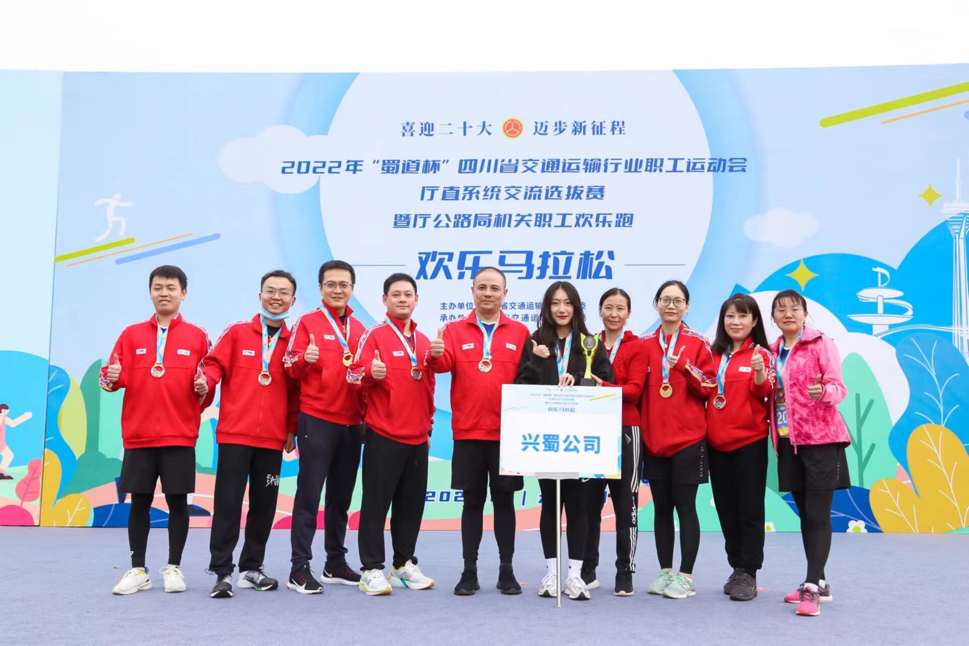 10月14日,廳直系統(tǒng)“歡樂(lè)馬拉松”交流選拔賽在天府公園歡樂(lè)開(kāi)跑。公司由黨委書(shū)記、董事長(zhǎng)袁泉帶隊(duì),十名員工參加了比賽,大家精神抖擻、步伐矯健,充分展現(xiàn)了興蜀員工團(tuán)結(jié)協(xié)作、積極向上的精神面貌。經(jīng)過(guò)激烈比拼,榮獲團(tuán)體第五名的好成績(jī)。
