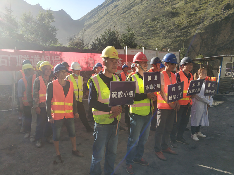 此次演練主要模擬上石門隧道出口后方3米處突發(fā)坍塌事故,4名作業(yè)人員被困塌方體的險(xiǎn)情。為確保本次演練有序進(jìn)行,迭瑪路指揮部成立以項(xiàng)目經(jīng)理為總指揮,應(yīng)急搶險(xiǎn)、保衛(wèi)協(xié)助、醫(yī)療救護(hù)、后勤保障等小組組成應(yīng)急救援隊(duì),配備機(jī)械設(shè)備4臺(tái),投入救援人員30人。險(xiǎn)情發(fā)生后,巡查安全員立即撥打120、組織人員撤離,項(xiàng)目部啟動(dòng)應(yīng)急救援預(yù)案,在各應(yīng)急救援小組的協(xié)同配合下,受傷人員被成功救出,演練取得圓滿成功。