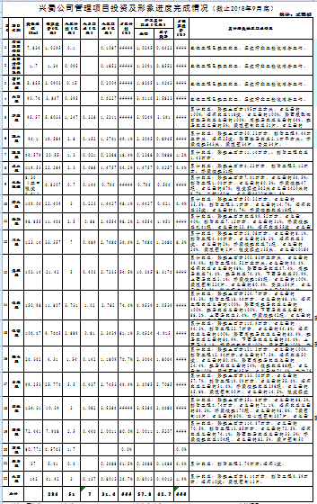 興蜀公司管理項(xiàng)目投資及形象進(jìn)度完成情況(截至2018年9月底)