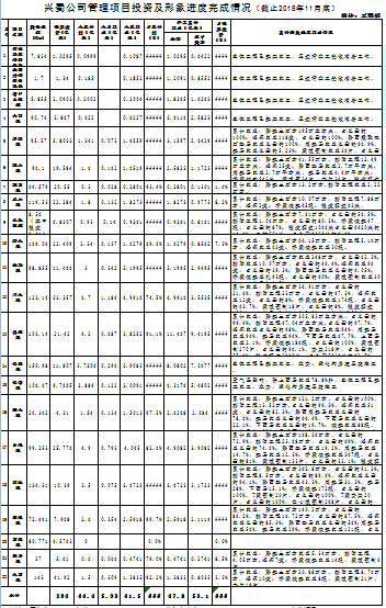 興蜀公司管理項(xiàng)目投資及形象進(jìn)度完成情況(截止2018年11月底)