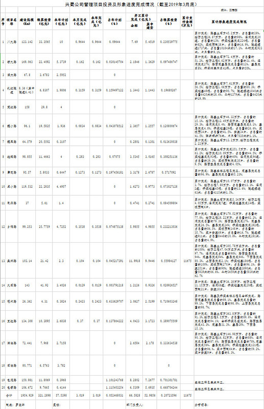 興蜀公司管理項(xiàng)目投資及形象進(jìn)度完成情況(截至2019年3月底)