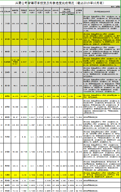 興蜀公司管理項目投資及形象進度完成情況(截至2019年10月底)