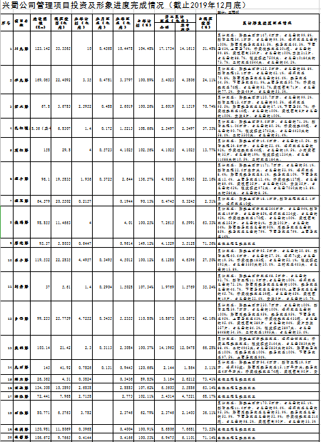 興蜀公司管理項目投資及形象進度完成情況(截至2019年12月底)