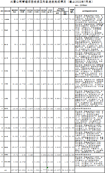 興蜀公司管理項目投資及形象進(jìn)度完成情況(截止2022年7月底)