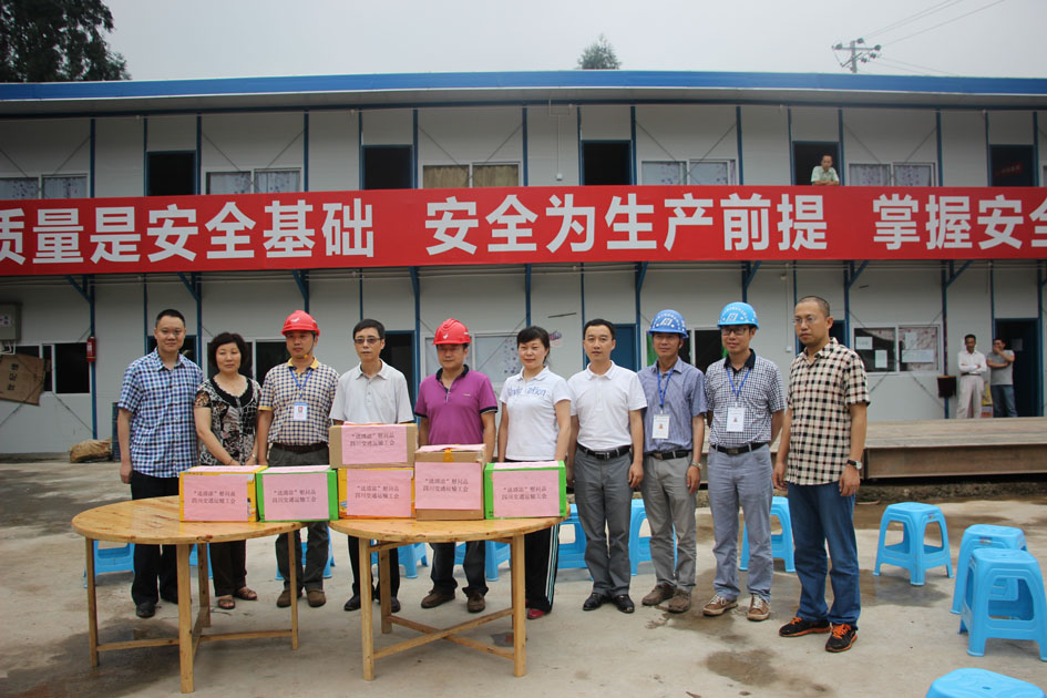 2014年6月19日,省交通運輸工會主席邱曉發(fā)、副主席涂蕻率省交通運輸工會、廳公路局工會一行在興蜀公司工會主席劉健的陪同下,對興蜀公司雅安災(zāi)后恢復(fù)重建項目建設(shè)者進(jìn)行了慰問,向他們送去了關(guān)愛和清涼。