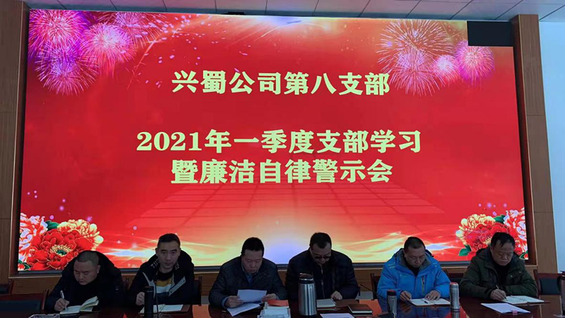 2021年3月6日,興蜀公司第八黨支部組織召開第一季度支部學習暨廉潔自律警示會,第八黨支部全體黨員、入黨積極分子參加學習會。