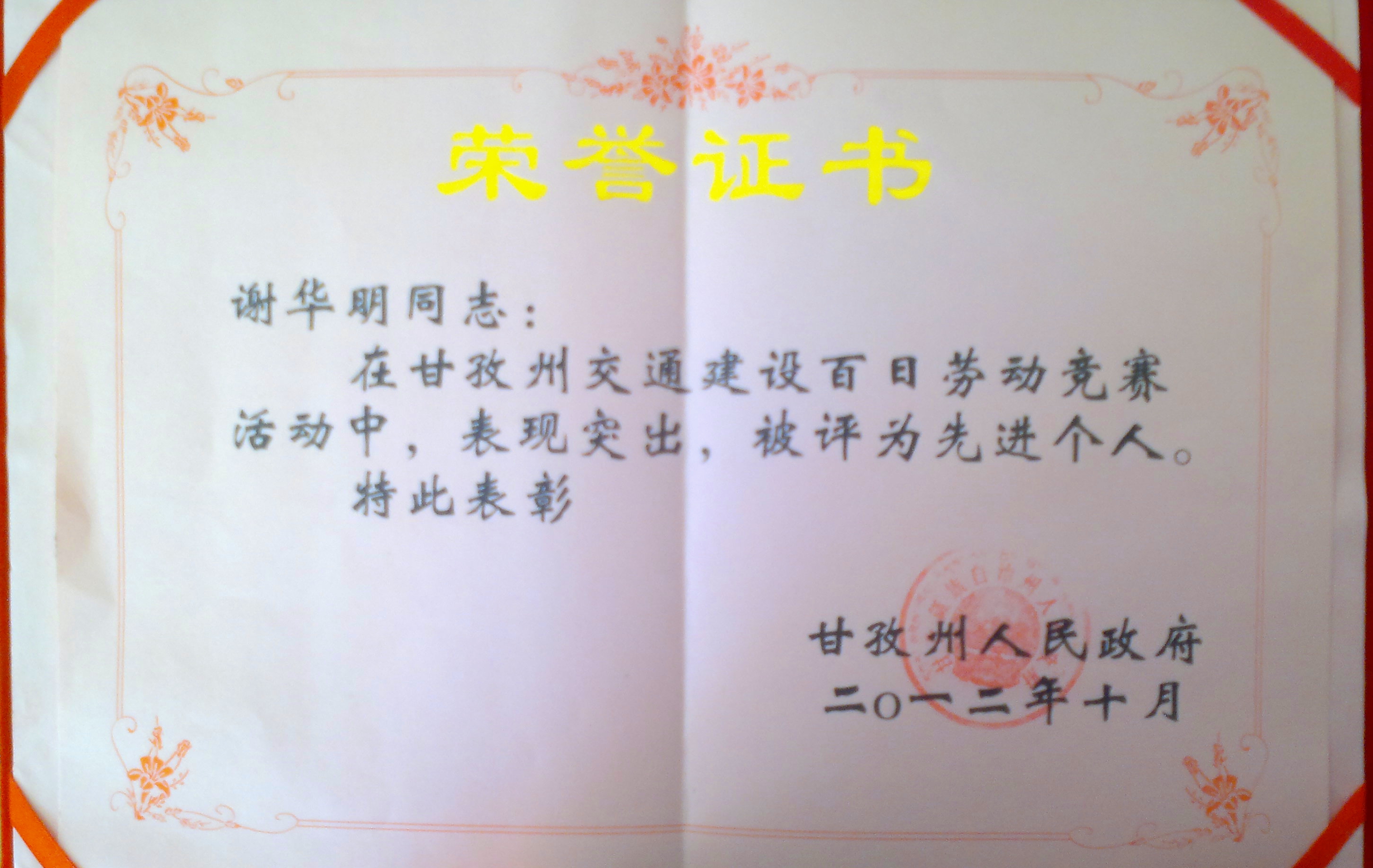 日前,在甘孜州“交通建設百日勞動競賽”活動中興蜀公司創(chuàng)造佳績,省道217線理亞路指揮部榮獲“甘孜州交通建設百日勞動競賽活動先進單位”榮譽稱號,國道318線東海路指揮部陳昕、謝華明、向貴學三名同志榮獲“甘孜州交通建設百日勞動競賽活動先進個人” 榮譽稱號。
