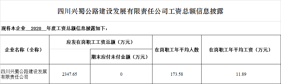 四川興蜀公路建設(shè)發(fā)展有限責(zé)任公司工資總額信息披露