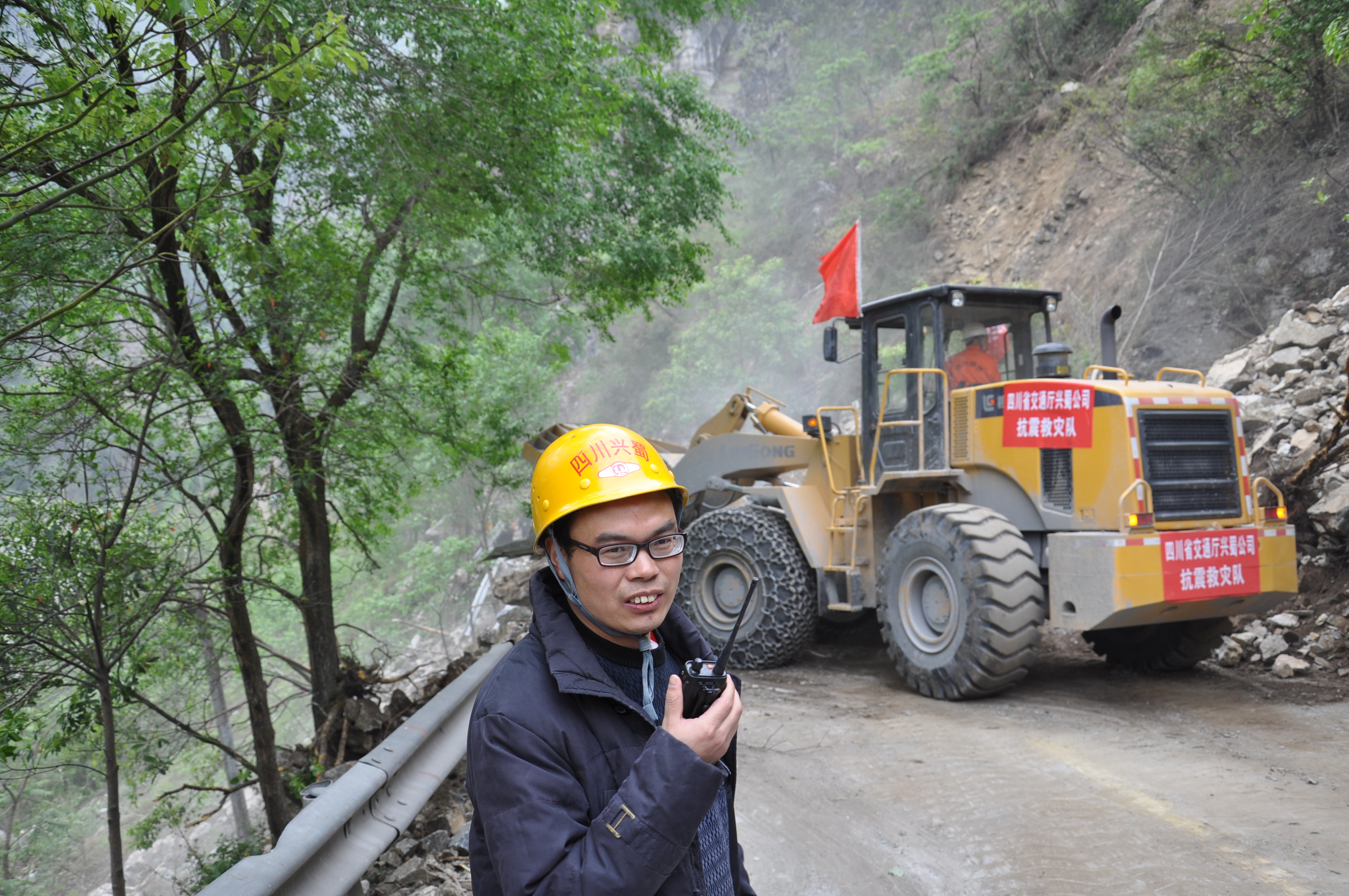 從夾江到成都,成都到映秀,映秀到日隆,日隆到蜂桶,輾轉(zhuǎn)560余公里于21日中午同大部隊(duì)會(huì)合。一路上他邊采購(gòu)物資,邊組織后續(xù)馳援機(jī)械。和第一批搶險(xiǎn)隊(duì)會(huì)合后,他帶領(lǐng)后續(xù)生力軍顧不得休息立即投入到搶通老關(guān)口的戰(zhàn)斗中。他不斷的爬上裝載機(jī),頭頂飛石拍攝災(zāi)害點(diǎn)圖片,然后和同事們看著圖片分析災(zāi)害變化,及時(shí)調(diào)整和優(yōu)化搶通方案,努力確保安全作業(yè)和盡早突破老關(guān)口瓶頸。他手持對(duì)講機(jī)邊觀察飛石,邊給機(jī)手加油鼓勁。在大家的共同努力下,歷時(shí)四個(gè)小時(shí)打通老關(guān)口飛石區(qū)。他負(fù)責(zé)從北端疏散受阻群眾,無(wú)一人受傷。