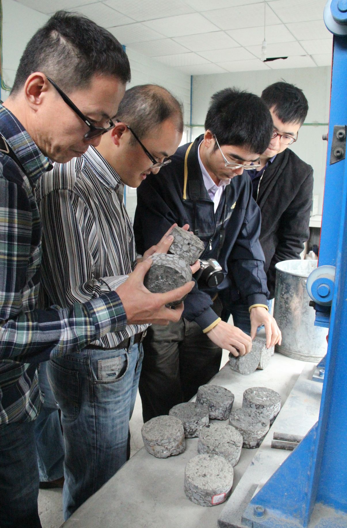 在現(xiàn)場查看瀝青路面拌和場時,專家組詳細檢查了原材料和工地試驗室。抽查了路面試驗鉆心樣品和實驗數(shù)據(jù),并與公司東海路雅紅代表處、監(jiān)理單位和各施工單位等相關人員就路面工程的瀝青原材、材料配比、攤鋪工藝、設備配置和質量控制措施等方面進行了交流與探討,為進一步優(yōu)化施工方案、保證工程質量提出了指導性建議和具體要求。