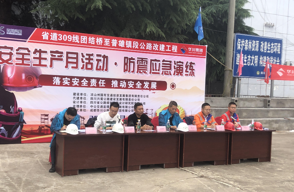 6月22日,興蜀公司越西指揮部在省道309線團(tuán)結(jié)橋至普雄鎮(zhèn)段公路改建工程華川項(xiàng)目部開展地震應(yīng)急救援演練。公司唐總、越西交通局相關(guān)領(lǐng)導(dǎo)、公司安全環(huán)保部、總工辦及涼山各項(xiàng)目指揮部應(yīng)邀出席觀摩。在指揮部的統(tǒng)籌安排下,各參建單位的大力支持與配合下,本次地震應(yīng)急救援演練取得圓滿成功,受到相關(guān)領(lǐng)導(dǎo)的一致好評。興蜀公司作為交通運(yùn)輸廳應(yīng)急搶險(xiǎn)主力隊(duì)伍,肩負(fù)著在建項(xiàng)目社會(huì)搶險(xiǎn)責(zé)任,通過此次演練,切實(shí)提高了項(xiàng)目應(yīng)急處置能力,為當(dāng)?shù)乩习傩丈?cái)產(chǎn)安全保駕護(hù)航。