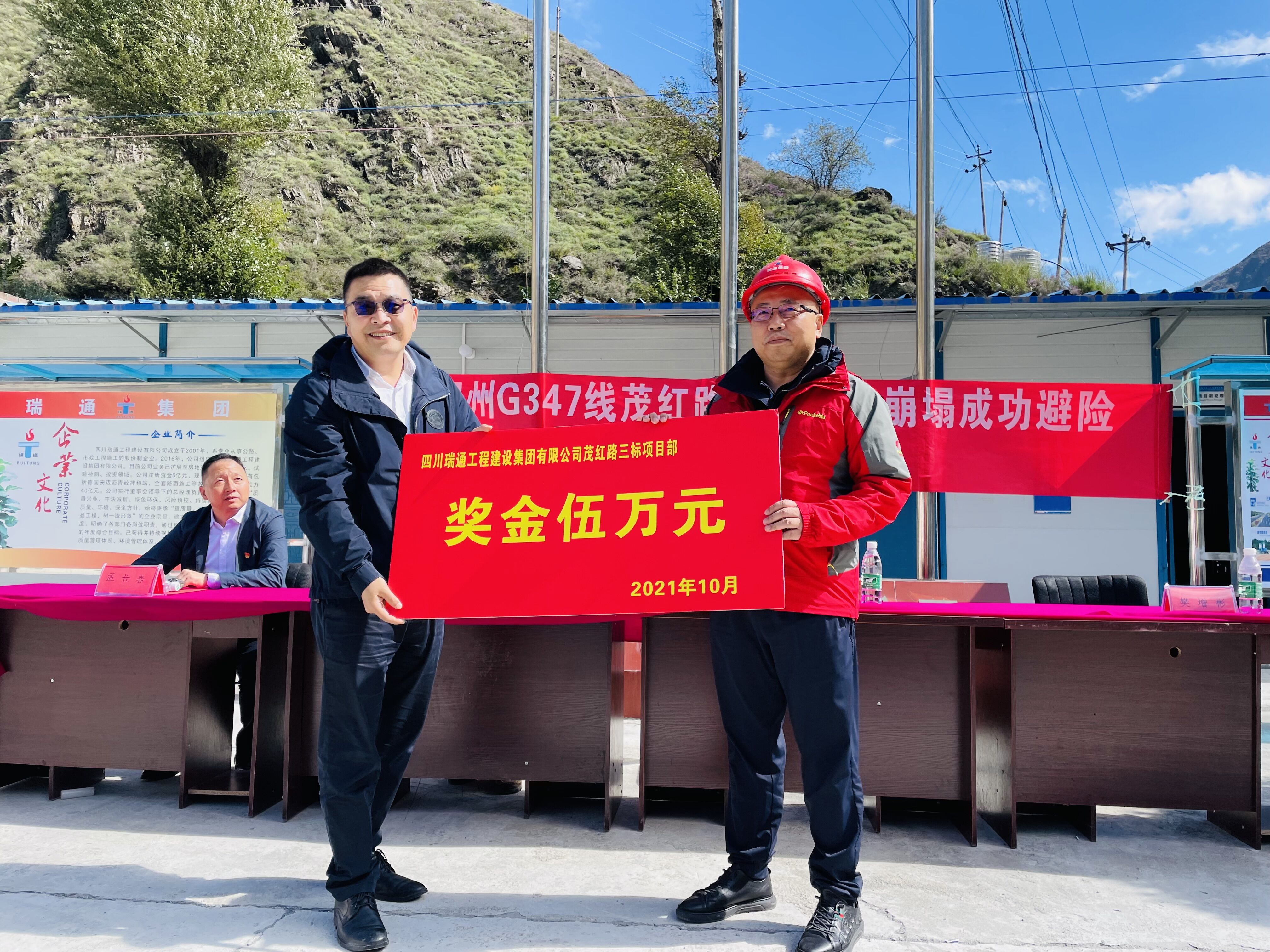 10月13日,省交通運輸廳、廳公路局、阿壩州交通運輸局、州公路局和興蜀公司對9月30日國道347線茂紅路成功防范避險一起山體高位崩塌災(zāi)害的施工單位(四川瑞通工程建設(shè)集團有限公司)和安全員何西進行表彰。表彰會由阿壩州公路局主持,州交通運輸局宣讀廳《關(guān)于茂紅路改擴建項目成功防范高位崩塌災(zāi)害情況通報》,廳公路局和興蜀公司分別頒發(fā)獎金和獎牌,安全員何西獲獎金3萬元和榮譽證書,施工單位項目經(jīng)理部獲5萬元獎勵。表彰會上,施工單位和安全員何西進行了發(fā)言交流,分享成功避險經(jīng)驗。