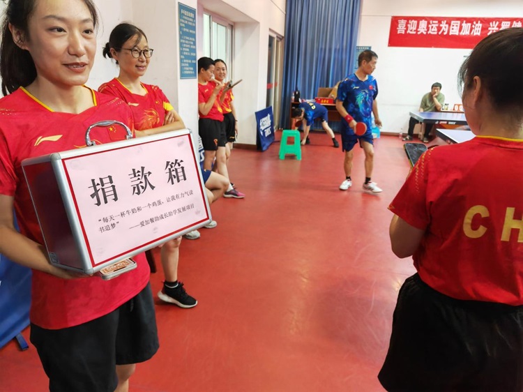 比賽間歇,參賽選手們和現(xiàn)場觀眾積極奉獻愛心,捐贈“愛加餐助成長”助學發(fā)展項目,為山區(qū)小學生募集了317份牛奶雞蛋。