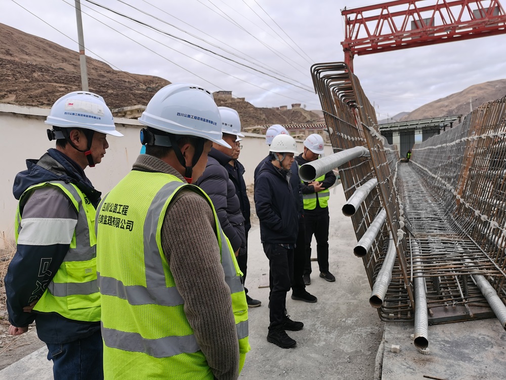 在色翁路檢查督導(dǎo)期間,潘華總經(jīng)理一行先后實(shí)地查看了甲根達(dá)2號(hào)中橋現(xiàn)澆梁、2號(hào)預(yù)制梁廠(chǎng),新老路面擴(kuò)寬段、旭日隧道、曼堂古隧道、霍西隧道等項(xiàng)目控制性工程,聽(tīng)取了各參建單位關(guān)于項(xiàng)目建設(shè)、用地要件辦理、技術(shù)保障及安全環(huán)保管理等方面的工作匯報(bào)。