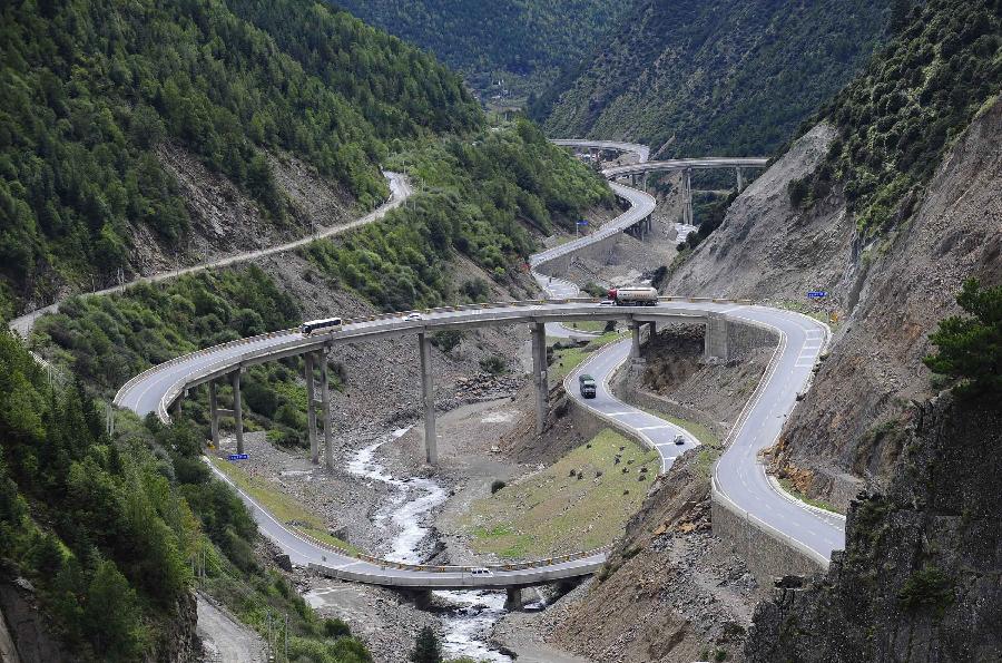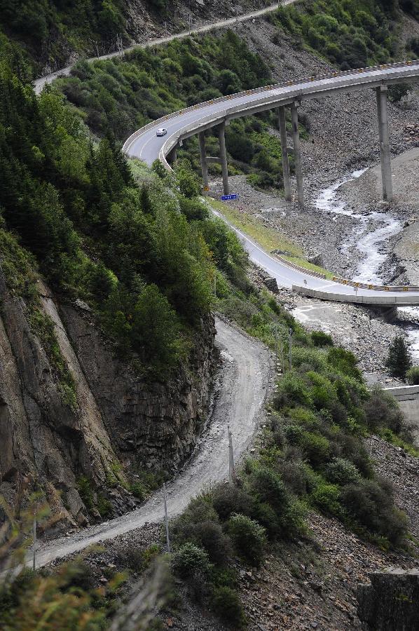 這是川藏公路東海路新路上的螺旋式橋梁(2014年9月14日攝)