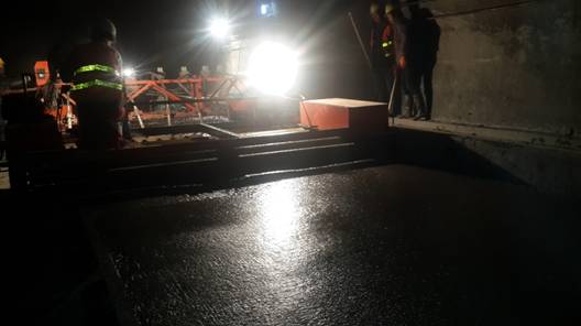 為提高隧道混凝土路面施工質(zhì)量,避免落后的施工工藝所帶來(lái)的各類質(zhì)量通病,興蜀公司G318線東海路代表處結(jié)合高原施工及機(jī)械設(shè)備、勞動(dòng)力配置等影響因素,積極探索出了一套科學(xué)、實(shí)用、經(jīng)濟(jì)、快捷的高原隧道混凝土路面施工方法,并于2014年11月25日在理塘隧道實(shí)施了隧道路面新工藝試驗(yàn)段的鋪筑。