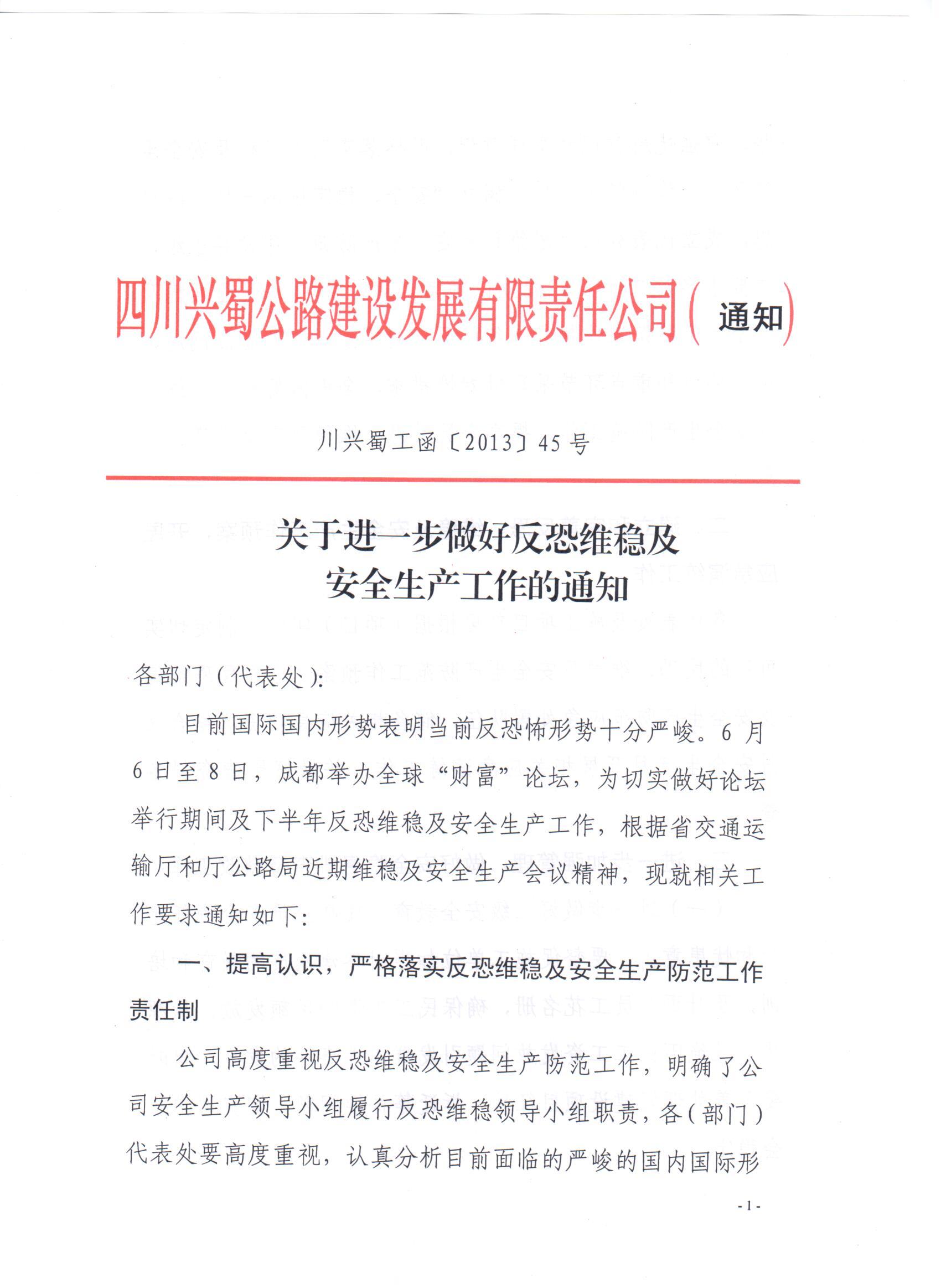目前國際國內(nèi)形勢表明當前反恐怖形勢十分嚴峻。6月6日至8日,成都舉辦全球“財富”論壇,為切實做好論壇舉行期間及下半年反恐維穩(wěn)及安全生產(chǎn)工作,根據(jù)省交通運輸廳和廳公路局近期維穩(wěn)及安全生產(chǎn)會議精神,現(xiàn)就相關(guān)工作要求通知如下: