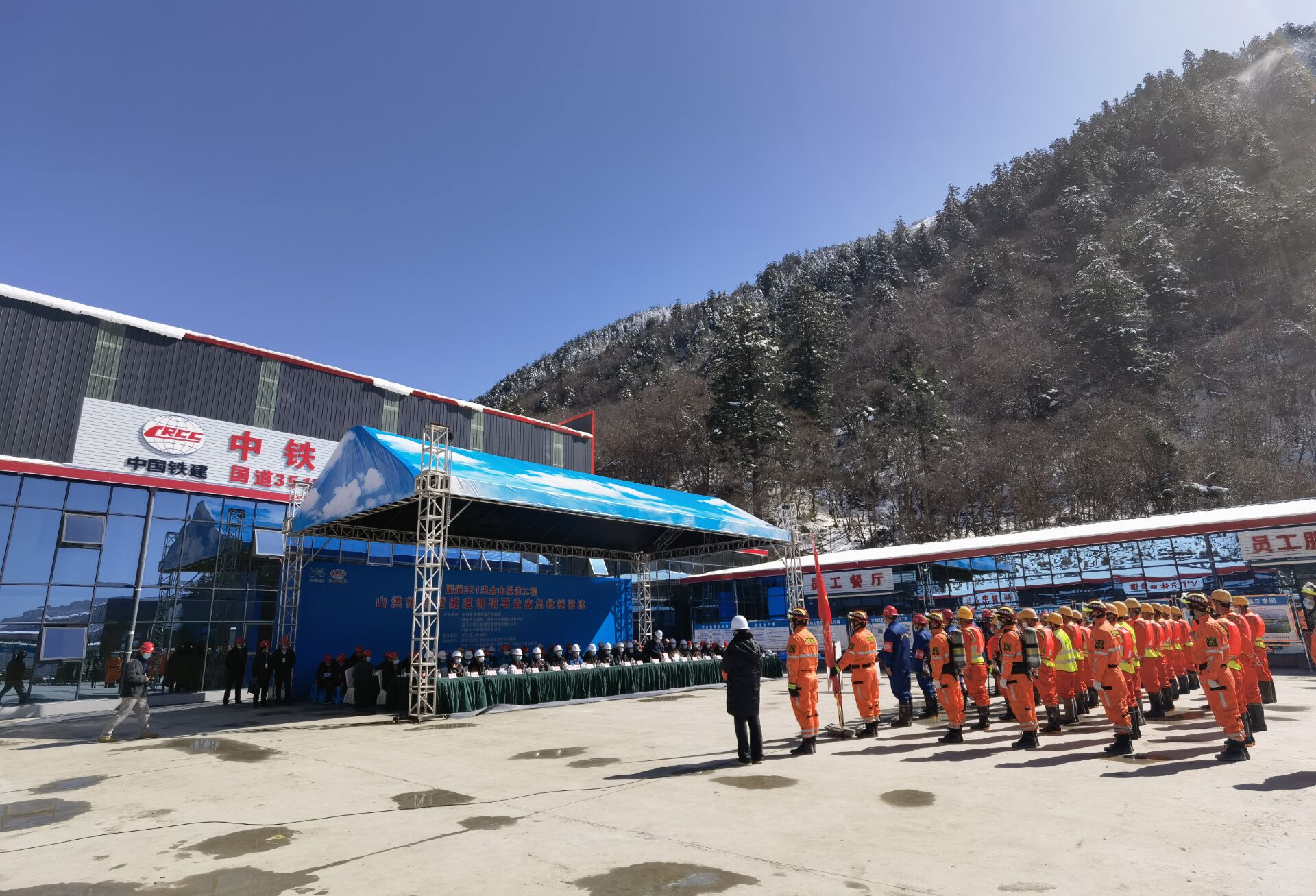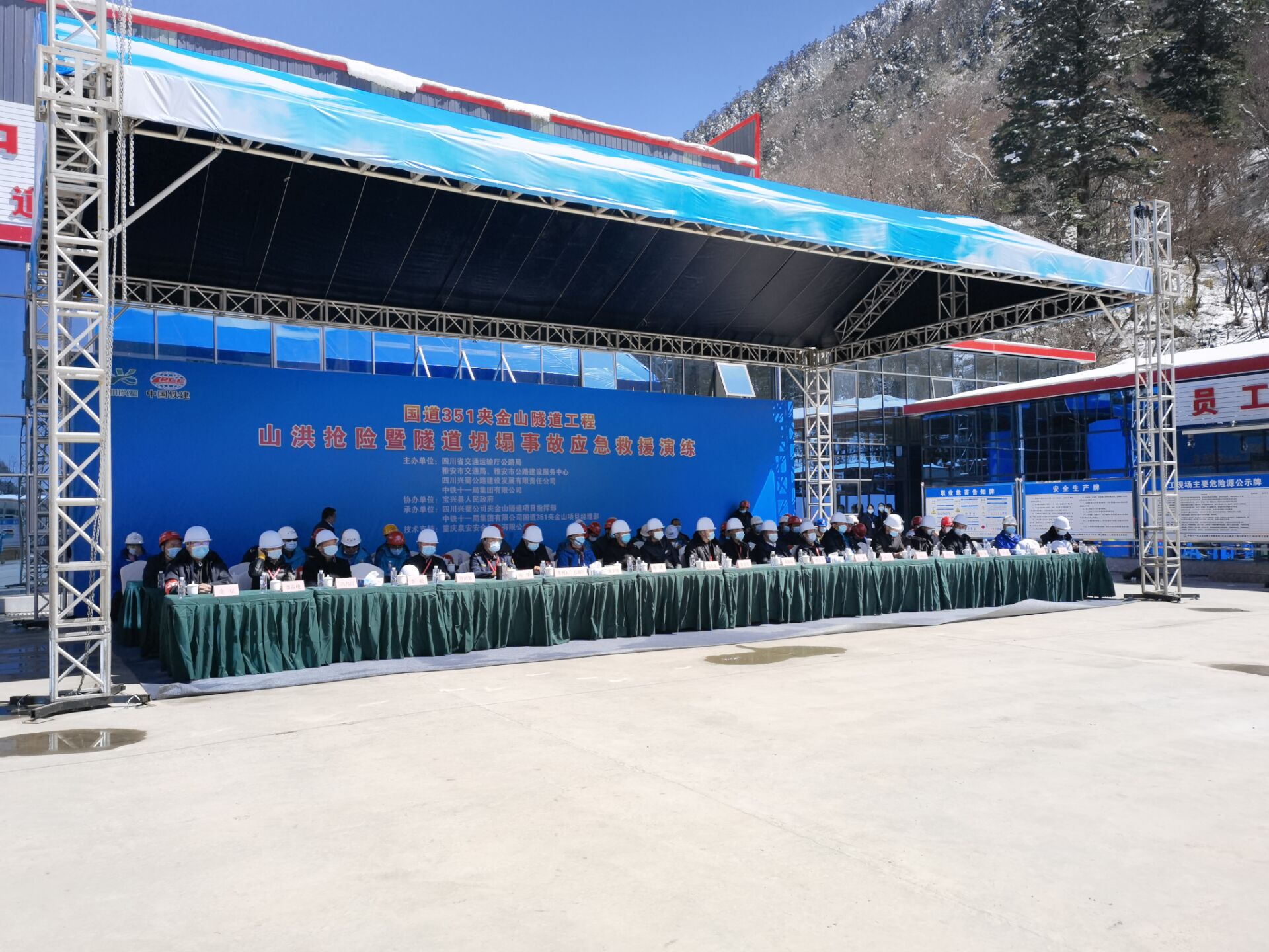 4月20日,興蜀公司代建管理的國道351夾金山隧道項(xiàng)目開展了山洪搶險(xiǎn)暨隧道坍塌事故應(yīng)急救援演練。演練模擬了隧道施工現(xiàn)場由于地質(zhì)突變,局部出現(xiàn)掉塊導(dǎo)致圍巖失穩(wěn),現(xiàn)場發(fā)生拱頂坍塌,2名工人被困掌子面,各參建單位立即啟動(dòng)隧道坍塌事故應(yīng)急救援預(yù)案,有序完成安全評(píng)估、人員疏散、救援等預(yù)定演練任務(wù)。通過此次演練活動(dòng),進(jìn)一步提升了本項(xiàng)目應(yīng)急避險(xiǎn)應(yīng)對(duì)處置能力。