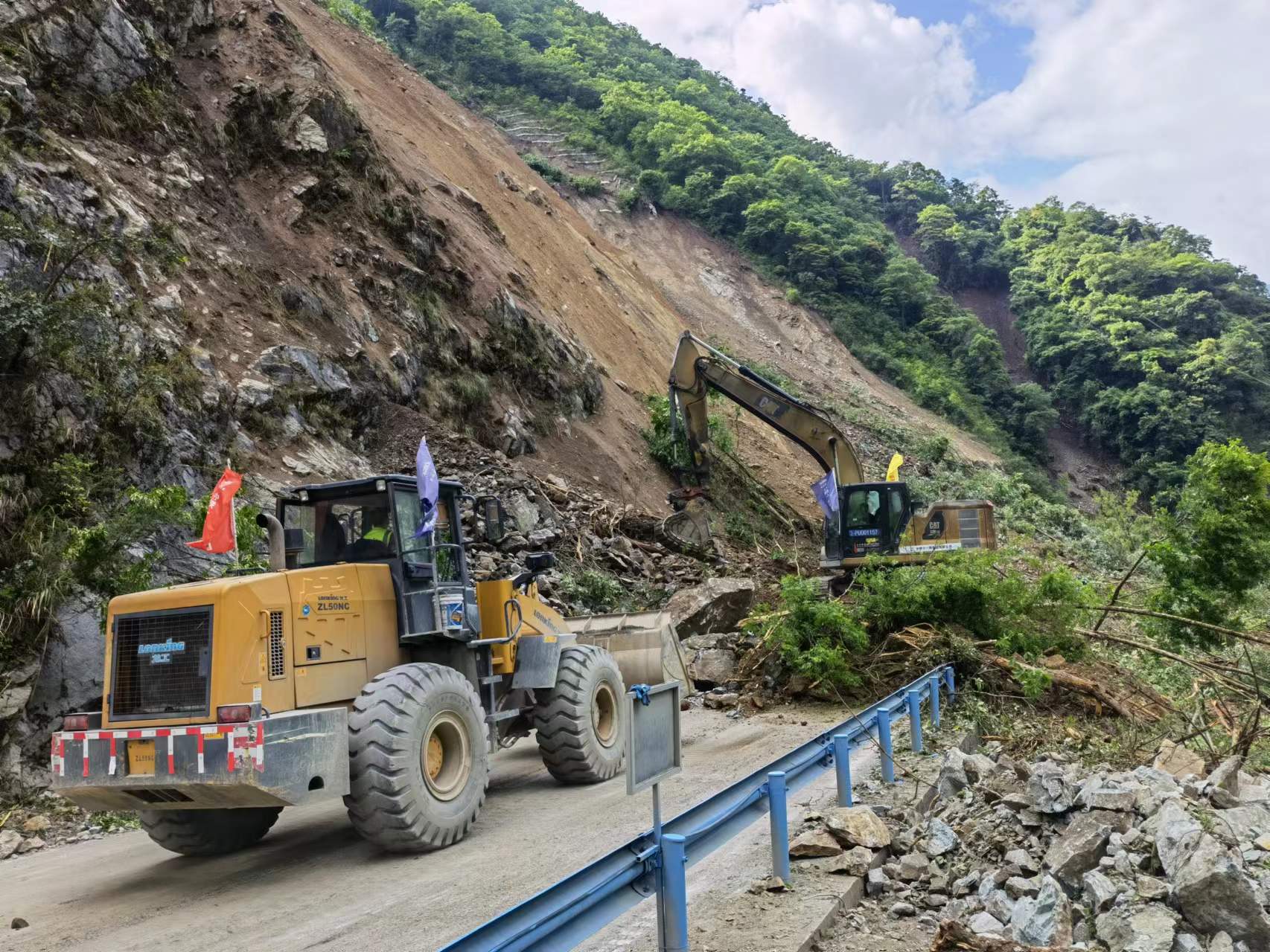 興蜀公司組織帶領(lǐng)施工、監(jiān)理等18人,設(shè)備3臺(tái)(裝載機(jī)2臺(tái)、挖掘機(jī)1臺(tái))于6月1日18時(shí)25分開展道路搶通工作。截止6月2日上午8點(diǎn),夾金山隧道進(jìn)口端至蜂桶寨鄉(xiāng)新華村隧道60余公里道路已全部搶通,目前僅剩余國(guó)道351線新華隧道出口端300米(洞內(nèi)150米、洞外150米)未搶通。目前,興蜀公司正在全力以赴攻堅(jiān)搶通該路段。