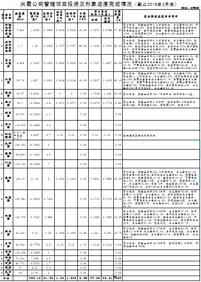 興蜀公司管理項(xiàng)目投資及形象進(jìn)度完成情況(截止2018年3月底)