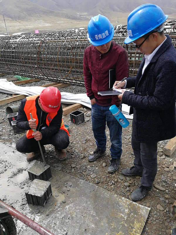 此次澆筑B標(biāo)雅礱江大橋2-1號(hào)樁基,雅礱江大橋是全線最早動(dòng)工的控制性工程,為30米跨徑后張預(yù)應(yīng)力簡(jiǎn)支T梁橋,設(shè)計(jì)樁徑1.6m,樁長(zhǎng)22m,采用沖擊鉆施工工藝,共澆筑混凝土52方。