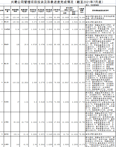 興蜀公司管理項(xiàng)目投資及形象進(jìn)度完成情況(截至2021年7月底)