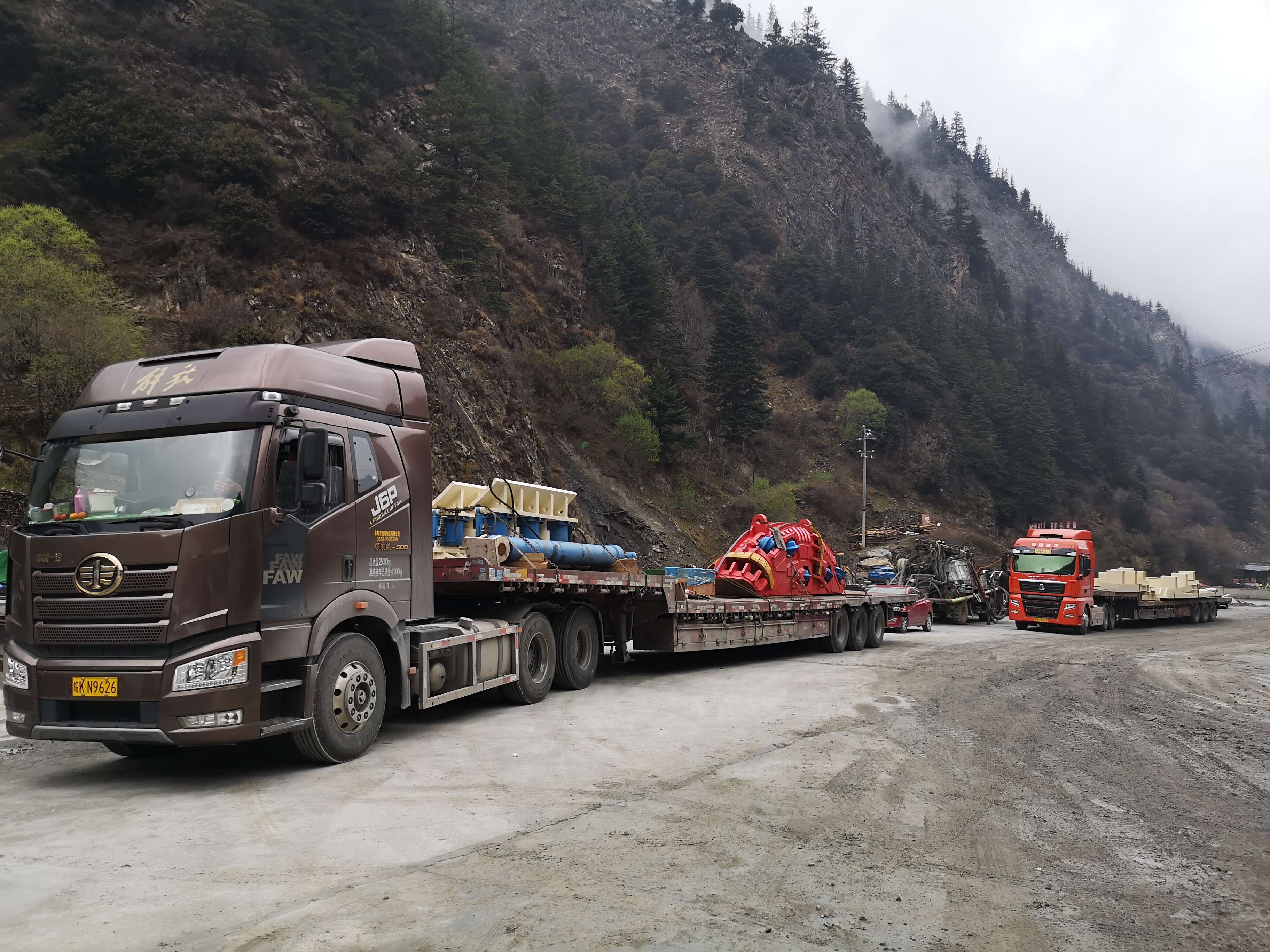 興蜀公司代建管理的G351夾金山隧道“夾金山號”TBM設備于4月16日下線后,立即開展拆卸、裝運工作。為確保順利到達施工現(xiàn)場,各相關單位建立聯(lián)絡聯(lián)動機制,前期已開展了路線勘察、地質(zhì)病害治理、橋梁荷載檢測、運輸方案論證、超限運輸車輛通行證辦理、臨時交通管制發(fā)布、疫情防控等相關工作。此次運輸分為大件運輸和普通貨運,大件運輸通行證已全部辦理完成,將分三批次開展超限運輸,分別為中心塊(刀盤)、主驅(qū)動(車貨總重198T)、主梁一、二和后支撐架。首次運輸?shù)钠胀ㄘ浳锏侗P邊塊和步進裝置已于24日凌晨到達夾金山隧道出口小金端施工現(xiàn)場,其余設備將分期分批運輸至工地,計劃5月中旬全部運輸?shù)綀觥?