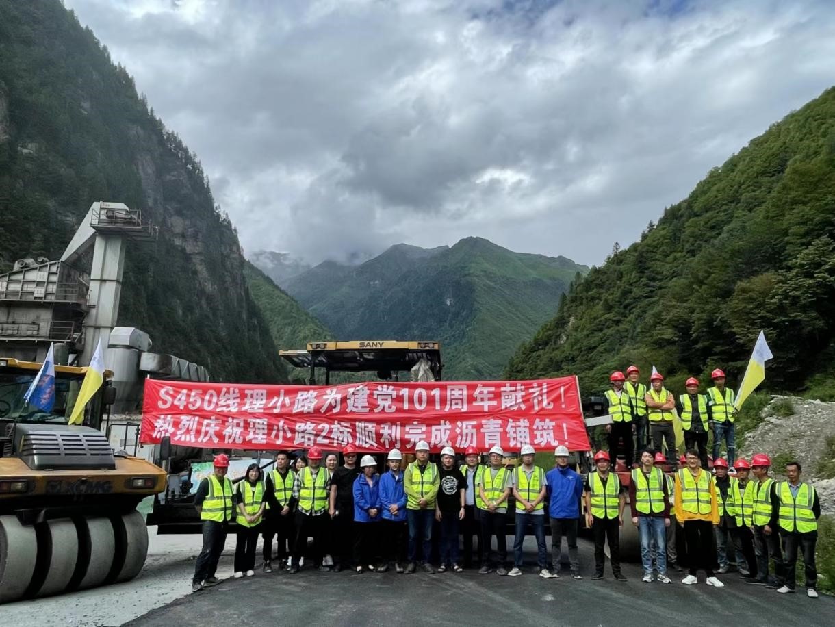 6月29日,隨著理小路LX2標最后一車瀝青混合料的順利鋪筑,興蜀公司代建的省道450線理小路項目在各級領導的關心支持和項目參建人員的共同努力下,按照既定時間節(jié)點完成了路面面層鋪筑(隧道段除外)。理小路項目起于國道317線理縣樸頭鄉(xiāng)二道橋,經(jīng)梭羅溝至涼臺溝溝口大梁灣,新建隧道穿越邛崍山脈,出隧道后沿小金縣結斯鄉(xiāng)順流而下,止于結斯溝口陳麻子橋,接國道350線,路線全長94.874公里,采用三級公路技術標準,項目總投資19.58億元。自開工以來,全體參建人員上下一心,克服了項目建設資金不足、特大山洪泥石流災毀、汛期道路阻斷以及新冠疫情防控等重重困難,群策群力,主動出擊,緊盯時間節(jié)點不放松,倒排工期,加大人員、設備投入,順利完成路面施工任務,標志著項目工作重心全面轉入剩余隧道及交安施工。該任務的完成極大的鼓舞了參建人員的工作積極性,為下一步全面完成項目建設任務奠定了堅實的基礎。