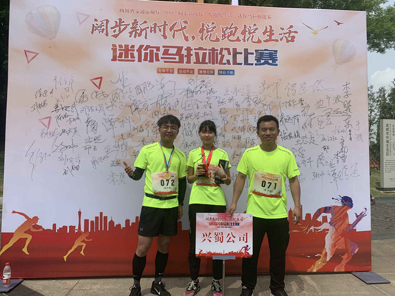 5月14日,為慶祝新中國成立70周年,由廳直機關(guān)黨委、交通運輸工會主辦,交通設(shè)計院公司承辦的2019年四川省交通運輸廳“闊步新時代,悅跑悅生活”迷你馬拉松活動在錦城湖4號湖順利舉行。廳機關(guān)、廳直單位共25支隊伍近兩百名選手參加了本次迷你馬拉松賽??籽鹞?,郝道明,胡許勇三名同志代表公司參賽,展現(xiàn)出了興蜀員工的頑強拼搏,奮勇爭先的精神面貌,孔佯微同志獲得女子組三等獎(第6名)。